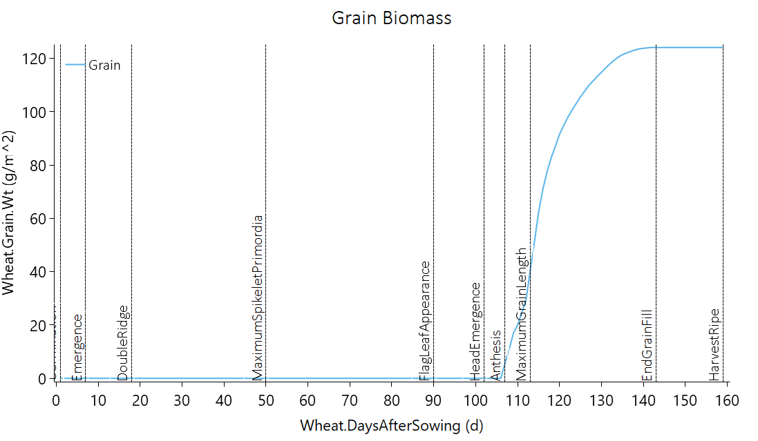 Seriesto theGraphand configure it as your desired output (e.g., x-axis asWheat.Phenology.DaysAfterSowing; y-axis asWheat.Grain.Wt). - Add a new model