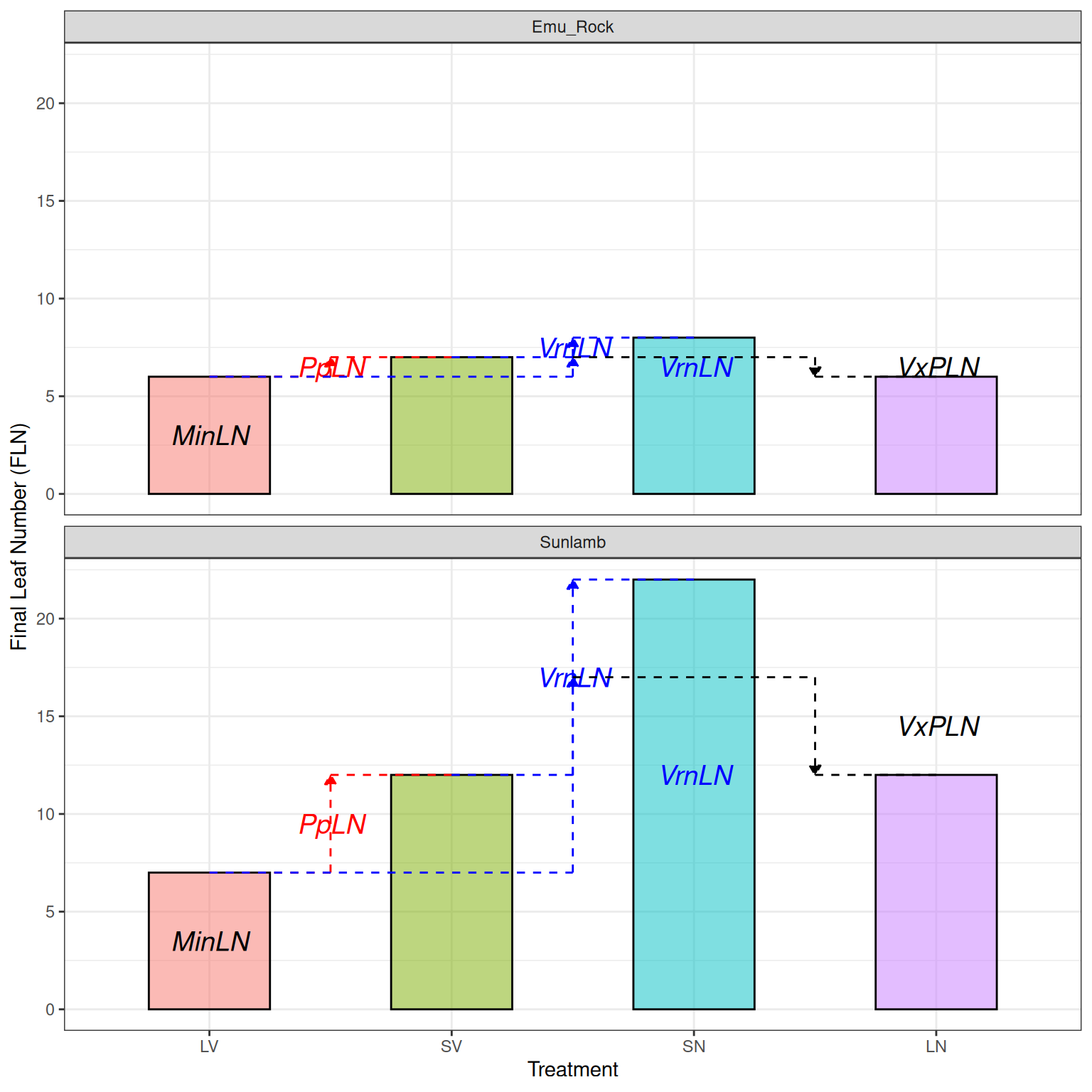 | LN | double | FLN when un-vernalised under long photoperiod |