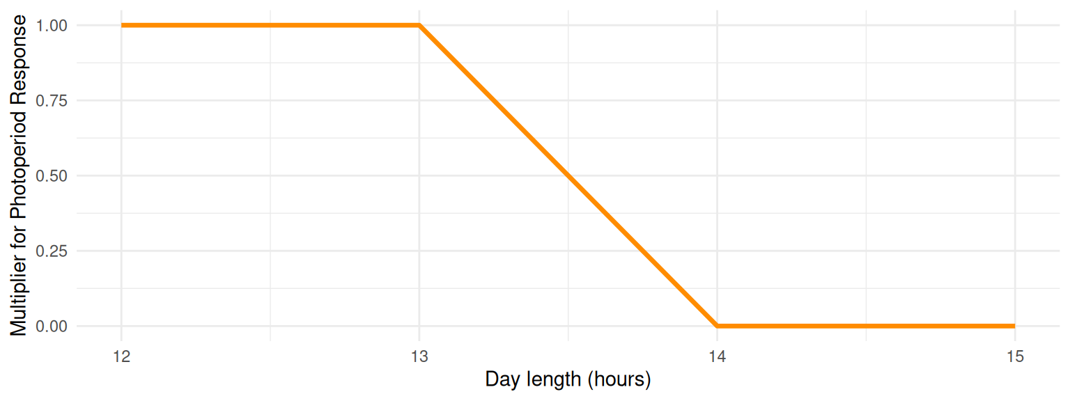 The Target thermal time is calculated using the following response function based on photoperiod: