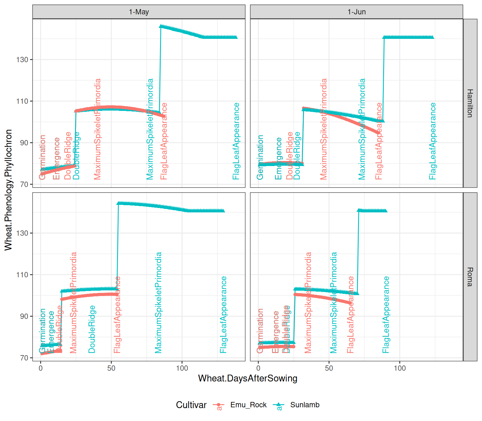 Two cultivars, Emu_Rock and Sunlamb, are used in the example simulations to represent the very quick and very late maturity types, respectively (Celestina et al. 2023).