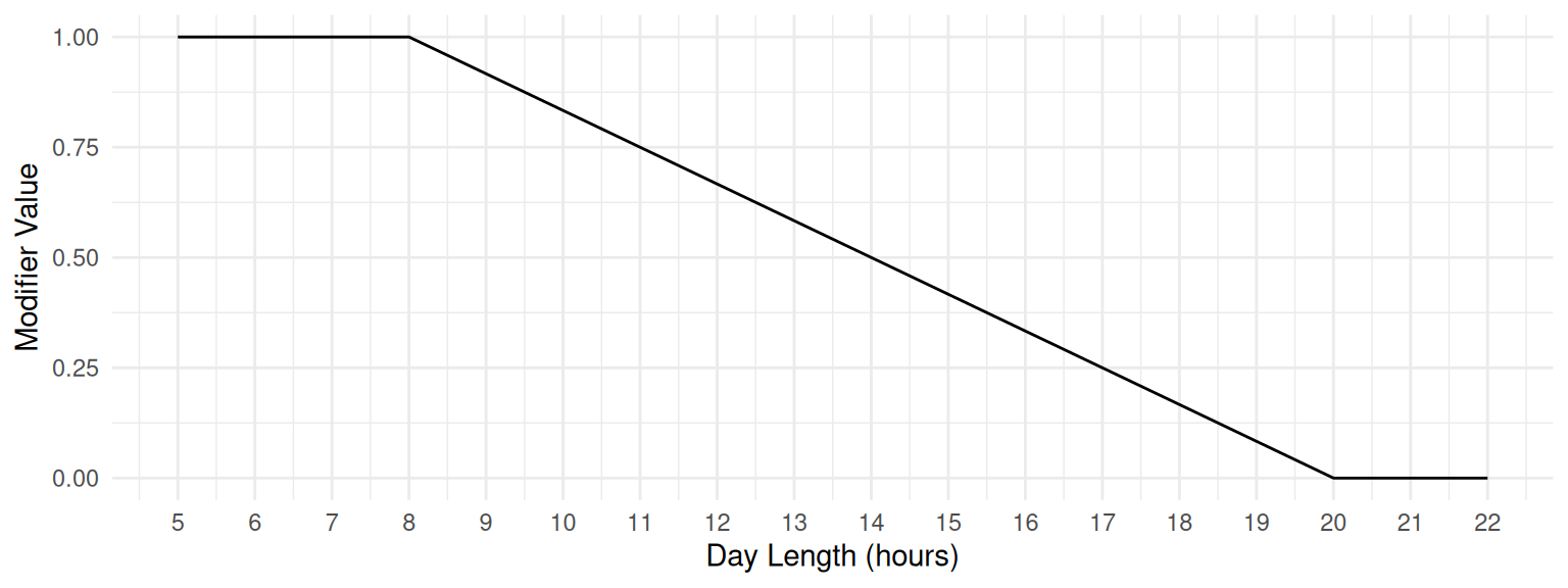 - \(\text{PpResponse}\) = interpolated modifier (0 to 1) based on day length