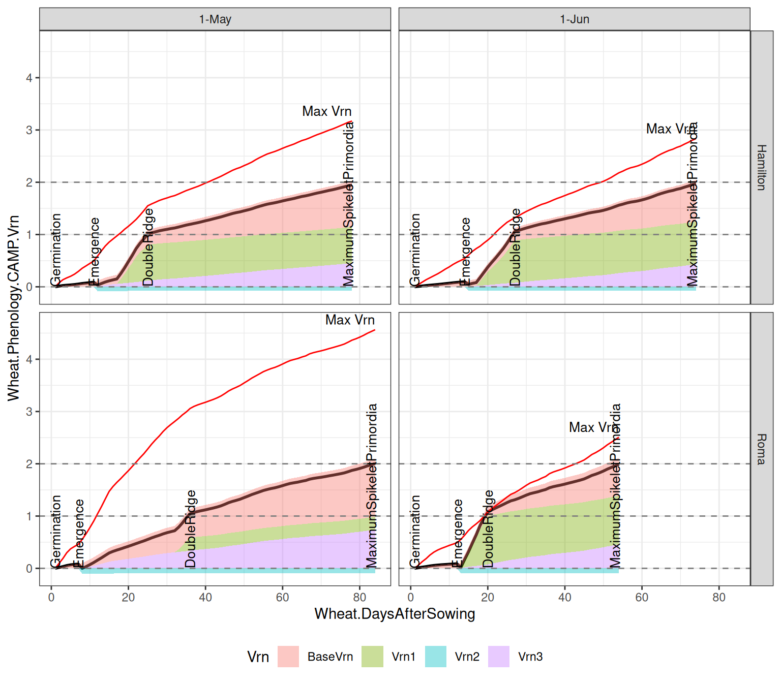 The VernalisationPhase Model is used to simulate the progress of vernalisation requirements. This phase begins when Plant Emergence to DoubleRidge.